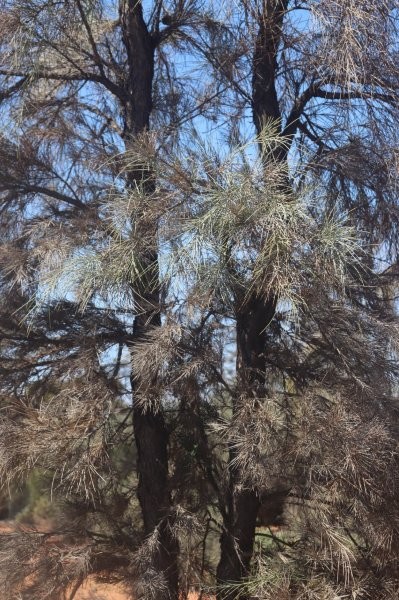 The tree is host to various butterflies and their larvae and also provides protective habitat for birds, such as grey falcons and desert finches. The foliage is often chewed by insects, but saplings are eaten by grazers, such as cattle and diprotodons. In the past, pastoralists used the tree to make highly durable and termite-resistant fenceposts and stockyards from the timber.